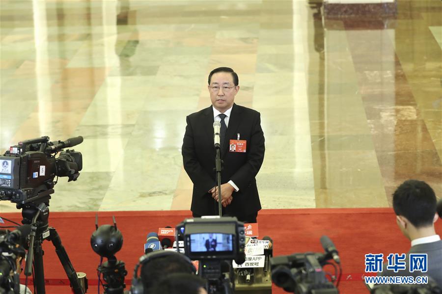 3月12日,十三届全国人大二次会议在北京人民大会堂举行第三次全体会议。这是司法部部长傅政华在“部长通道”接受采访。 新华社记者殷刚摄
